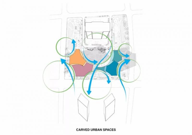 除了高层住宅内建立的公共区间,塔楼内部的空隙也进一步引入了自然绿色景观。而整体结构自由空间率的提高,为公寓和公共区域带来更多自然采光和通风。这种做法亦减少了机械方式产生的能源消耗,赋予项目生态气候以新的维度。