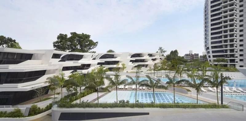 由UNstudio事务所德国分部设计完成的阿德摩尔住宅坐落于新加坡商业区。UNstudio使用曲线来表达有机和自然的概念,以回应新加坡“花园城市”的理念。设计师通过四大细节将这种景观概念融入设计:通过细节构成多样化的有机纹理和图案,打造连贯的建筑外观;通过双层通高的阳台给予公寓内部极其良好的采光和视野;通过采用“居住景观”的理念,呈现两种公寓类型的设计;通过首层的花园和开敞的室外大空间强调了空间的穿透性和连续性。