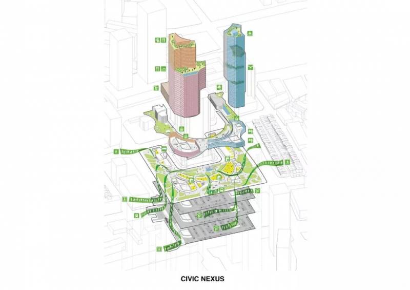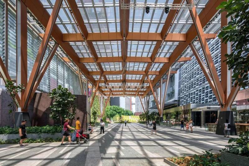 项目在有限的场地内,创造了丰富的空间体验,下层是开放广场,中层是医疗中心,上层是老人公寓和社区公园。这三个截然不同的楼层将各种建筑用途串联在一起,使土地利用最大化,形成一个垂直村庄,是应对新加坡人口老龄化设计探索的典型案例。