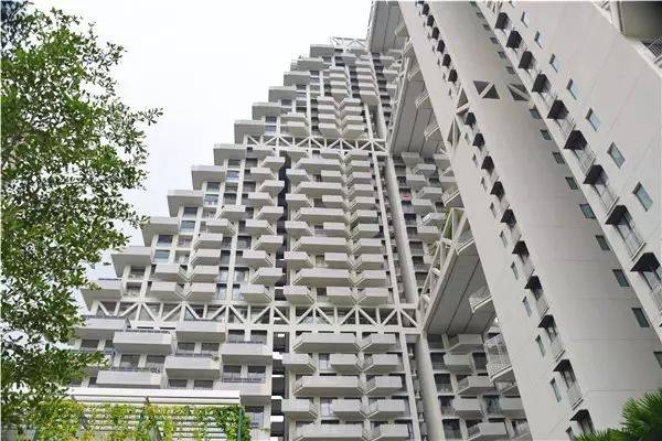 受加拿大蒙特利尔一座改变城市生活面貌的建筑地标Habitat 67所启迪,莫瑟萨夫迪(Moshe Safdie )通过设计、形式与功能的重组融合,为公寓家居找到新定义。建筑方面采用梯形结构,结合开放式花园,使得每户都拥有私人阳台。