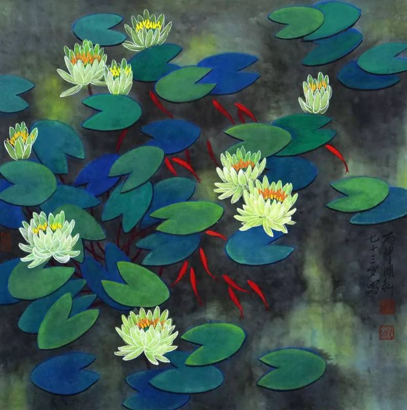目前展出的荷花系列画作,是由中国著名画家王明科创作的,他是中国著名画家张大千的再传弟子~