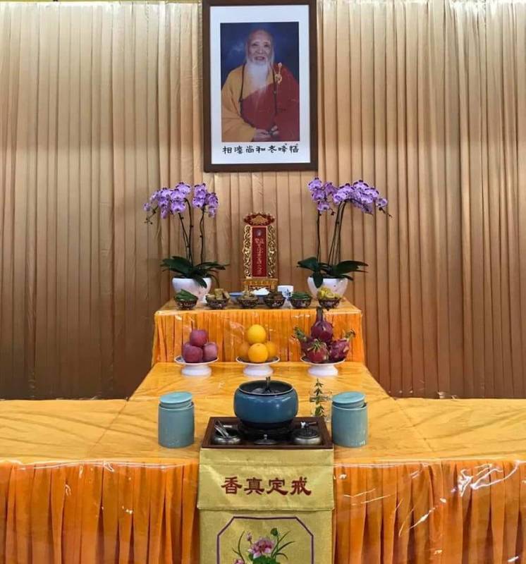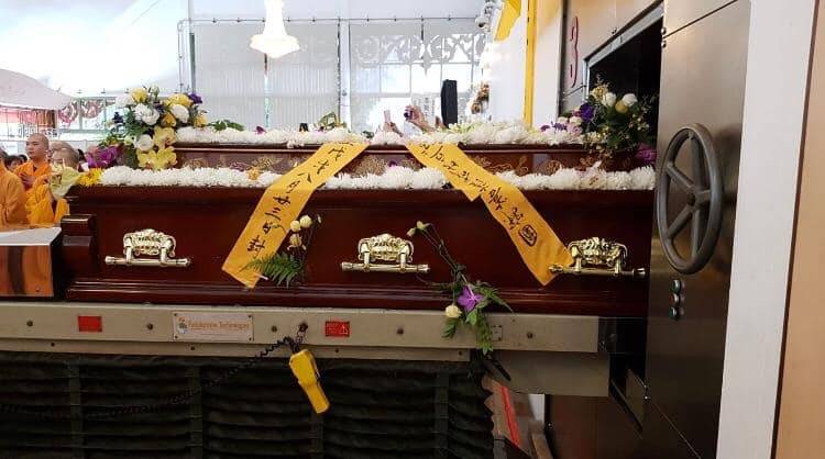 悟峰长老的灵柩从亚历山大路的观音亭出发,下午1点多抵达光明山的火化场。光明山做了特别安排,让大批信众参与。虽然下午下了一场雨,但仍然吸引不少信众前去。火化场做了简单的布置,现场庄严肃穆。