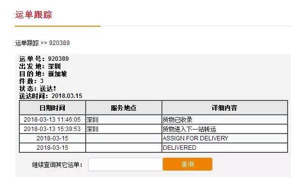 2.将货物寄到盛世领航国内取件公司后,记录好国内快递单号;
