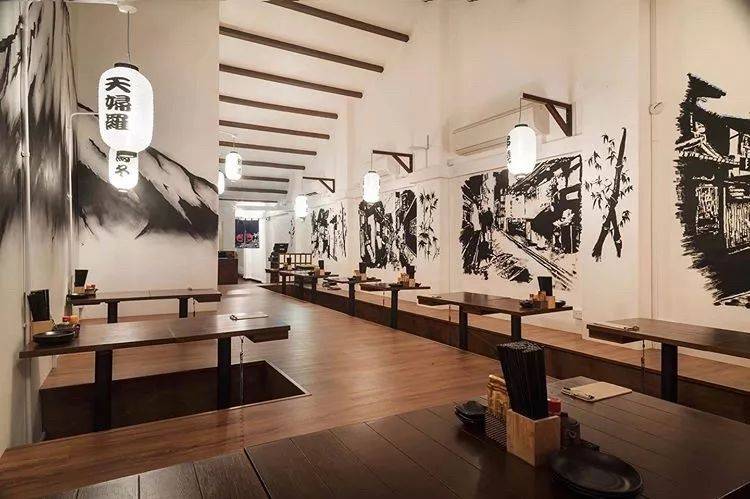 一上到居酒屋的二楼会看到大面积的白色墙壁和黑色的壁画,再配上木色的榻榻米,就连装饰的灯笼也不再是大红色了,整个素色的环境让人能很快的安静下来。