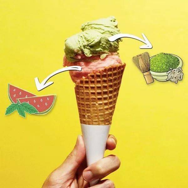 每一天店里会推出8个不同味道的冰淇淋:薄荷西瓜、苹果生姜、开心果、香蕉、榛子等口味。冰淇淋口味会不定时的改变。