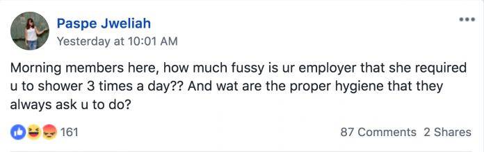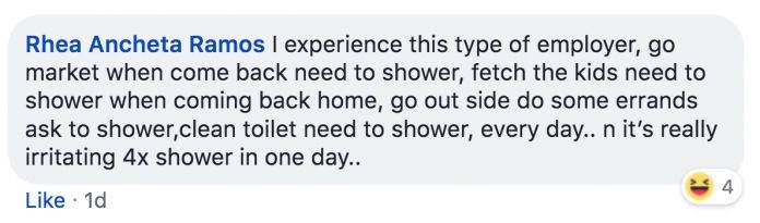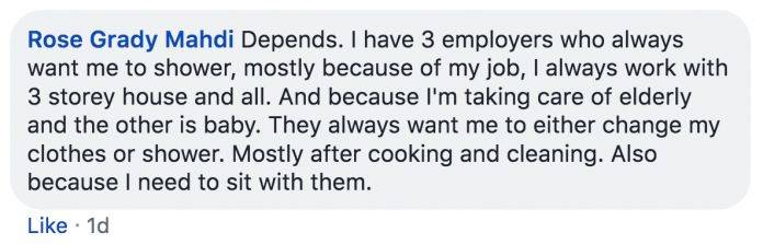 每个人有自己的冲凉、清洁习惯,但雇主这样管制女佣的洗澡次数,真的合适吗?