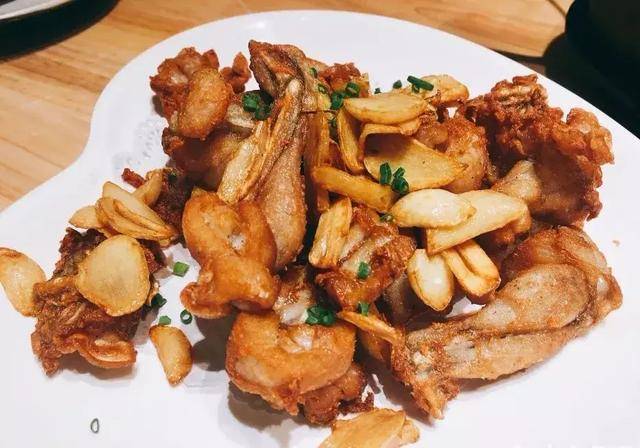 当然,这里的炸田鸡也非常受欢迎,外酥里嫩,香味四溢。搭配着大蒜,让田鸡口感更升级。这金灿灿的,是一道非常让人有食欲的菜品。