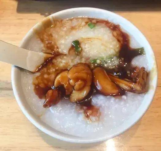 这里白粥的大米都是新加坡专供的,经过6小时熬制,越搅拌越浓稠,口感香浓顺滑。几乎每个到店的人都会点上一份。