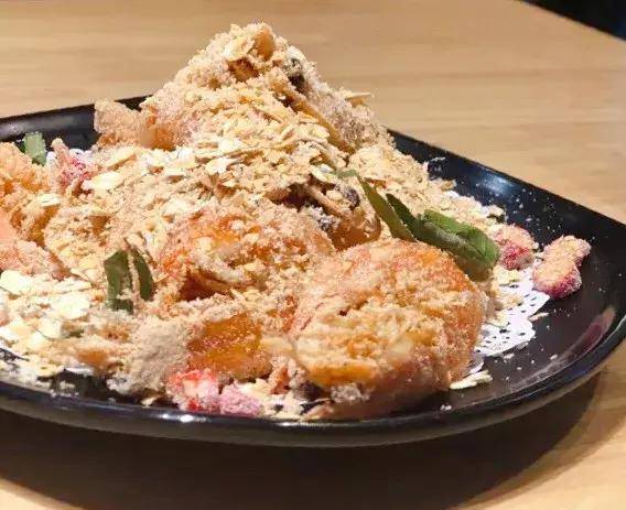 还有一道特色的菜,也值得一提,麦片虾。虾和麦片都能吃,麦片不是那种很甜的,虾炸的也刚刚好,都是新鲜现炸的,口感很特别。