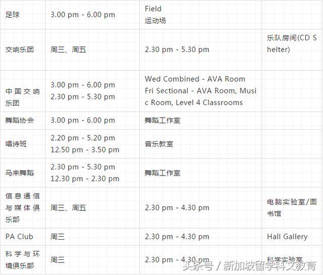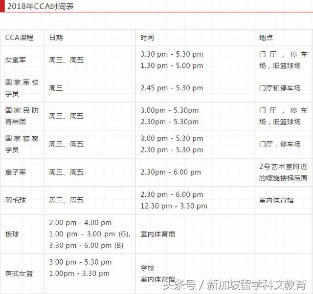 看完这样一张时间表,是不是对去新加坡留学更向往了呢?毕竟这么多的CCA课程,总有一个既能展示出你的能力又是你喜欢的课程。优秀如你,怎能错过~