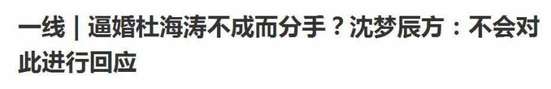 而根据媒体的最新报道称,在联系了双方的经纪人之后,杜海涛方面未做回应,而沈梦辰方面称不会回应。