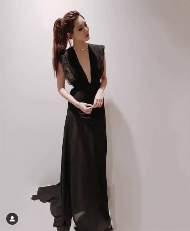 红唇烈焰搭配高开叉的深V礼服真是气场十足呢