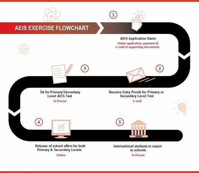AEIS 包括对英语和数学的集中测试,将评估申请人的英语读写能力,计算能力和推理能力。入学不能保证,并且取决于申请人在考试中的表现。如果成功,安置将取决于可用的空缺和申请人在新加坡申报的住宅区。