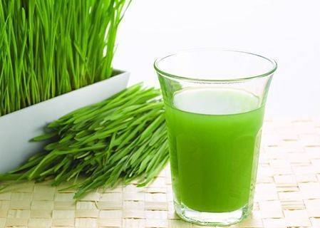 将3-4个蒜瓣、10-12个罗勒叶和1/4杯小麦草汁搅拌在一起。
