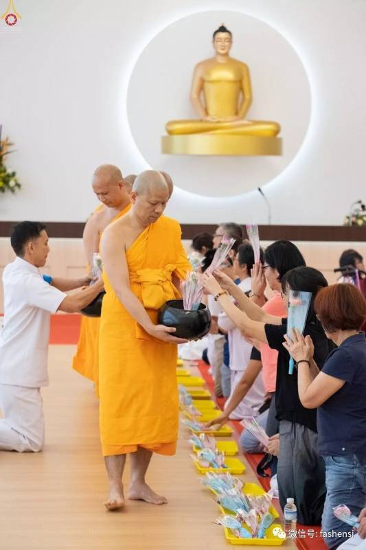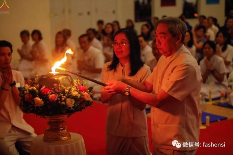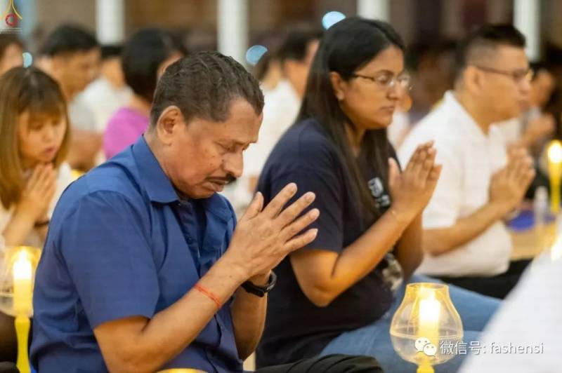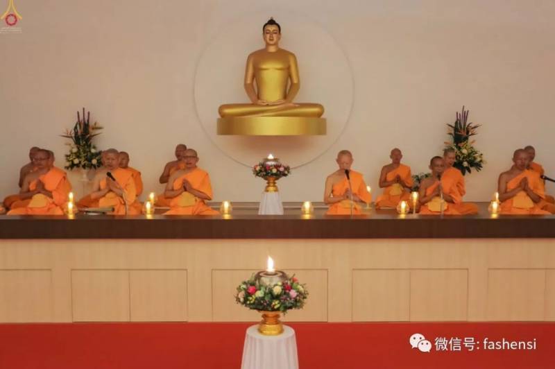 僧团跟大众一起诵经、打坐,净化身口意。以准备最清净的心接纳即将产生的大功德。