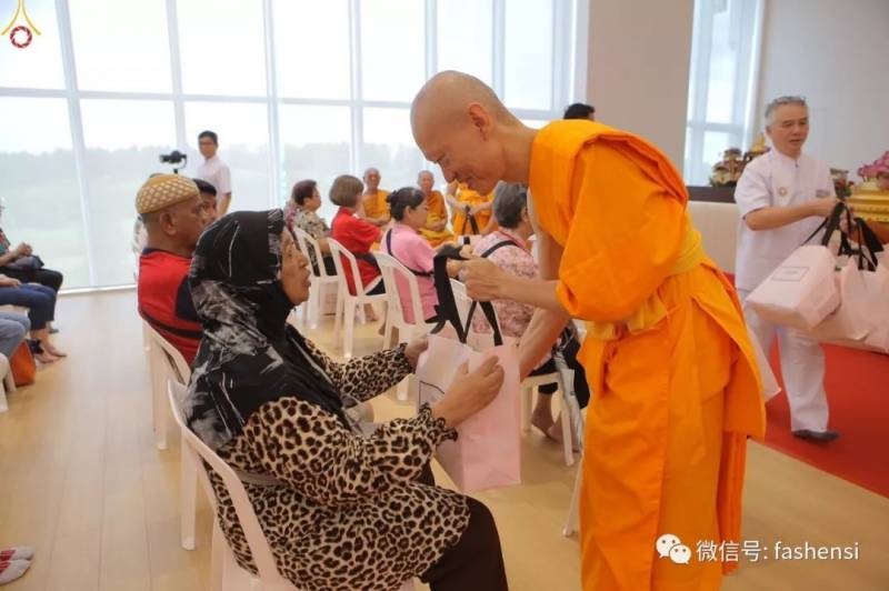 今年也不例外,在5月18日的上午,新加坡法身寺就邀请了来自芽笼东老人之家,Man Fut Tong Social Welfare Services以及Prestige Welfare from Woodlands的乐龄人士, 来到我们新寺院。除了接受僧团祝福,每位受邀的乐龄也获得由僧团派发的礼包。