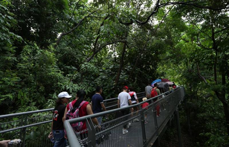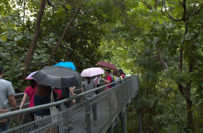 刚下过雨,天气不热不燥,极度舒适。贯穿丛林的栈道被绿树环绕,丛林就像一个天然的大氧吧。