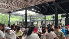 在主持人的带领下嘉宾高度配合,先来个集合热身,在雨和泥土混合的芳香中来个拉伸~
