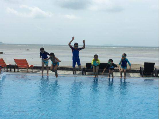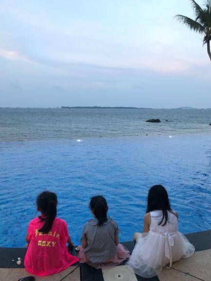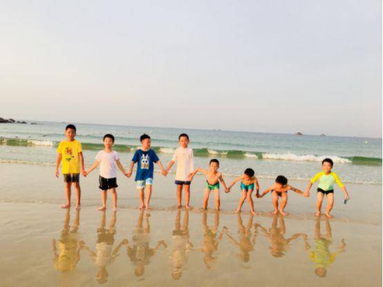 因为这次出游大家都带着小朋友,我们的行程安排的不是很紧,第二天主要的时间是呆在酒店,所以小朋友们有充足的时间在海边玩沙,游泳,这里的海水很清,在离沙滩不远的海里就可以看到小鱼,还可以挖贝壳,小朋友玩得不亦乐乎。