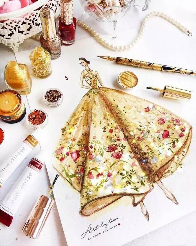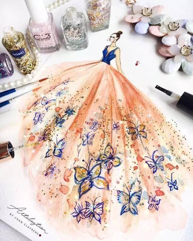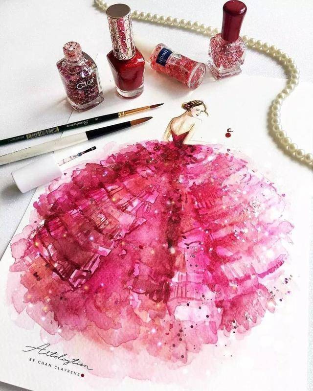 美丽女孩用指甲油画高定礼服裙,本来闹着玩,居然惊动了国际大牌
