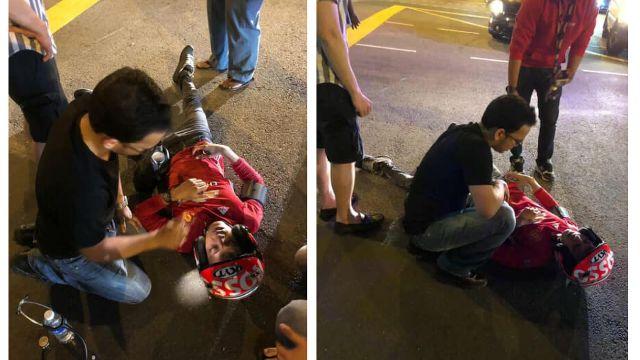 一名医生目睹车祸后,随即停下车子伸出援手,为躺卧在路边的受伤摩托车骑士施救。暖心助人过程被路人拍下上传网络,获网民大赞。