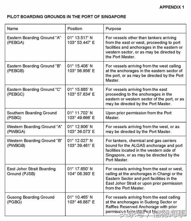 最后我们再来谈谈引水下船,新加坡引水下船点一共有10处,相关信息可以在新加坡进港指南以及新加坡港口信息这两本资料中找到,在此不详细介绍。