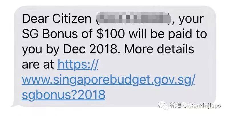 1)政府发送的简讯会显示发送者是“SG-Bonus”;
