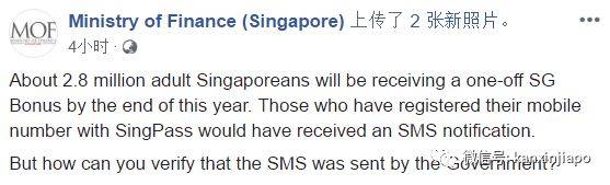 (截至今年年底,约有280万新加坡人将获得SG奖金。 那些在SingPass注册了手机号码的人会收到简讯通知。但是,如何确认简讯是由政府发送的呢?)