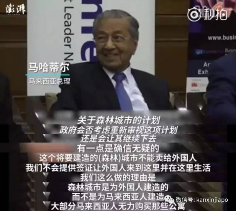 先是8月27日,马来西亚首相马哈迪直接表示:森林城市不能卖给外国人!我们不会提供签证让外国人来这里并生活。因为森林城市不是为马来西亚人建造,大部分马来西亚人无力购买那些公寓。