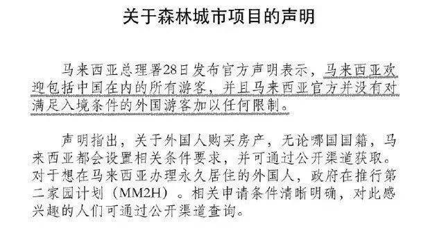 8月28日,碧桂园发布项目声明,否认马哈迪说法,称马来西亚总理署已官方发布文件,在符合当地法律规定的前提下,外国人可以购房!
