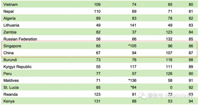 (2017年新加坡还排在中国之前,今年中国虽然也有退步,但没有新加坡那么惨,排在第115位 。)