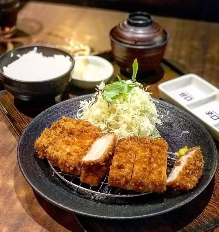 日式炸猪排历史悠久,看似简单的日式炸猪排,却也是需要大师傅精心调味和料理。一道成功的日式炸猪排,一定要松香酥脆。炸猪排的妙处在于金黄酥脆的面包粉外衣和厚实鲜嫩多汁的猪肉在口感上的强烈对比。油炸能最大程度的释放出食材的香味并锁住其水分。先是迎面扑来让人口水欲滴的猪肉香气,随之是金黄色的面衣和翠绿色的包菜丝带来的颜色上的赏心悦目。