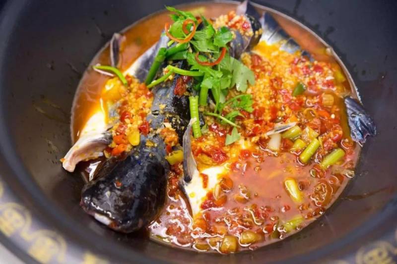 选好鱼后,服务员会将处理好的鱼放入锅中