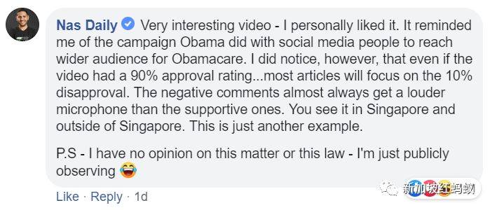 很有趣的视频—我个人很喜欢。它让我想起奥巴马竞选时也与一些社交媒体网红合作拍摄视频,让更多人认识奥巴马医改(Obamacare)。我也注意到,即使有90%的人为视频点赞……多数文章依然会将焦点放在那些10%的反对声浪上。负面意见总是能比支持意见拿到声音更响亮的麦克风。在新加坡如此,在国外也是如此。这只是多一个例子。