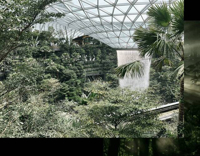 很难让人相信,以上种种,都发生在一个玻璃穹顶之下的mall!而这片森林,竟然还建在机场里...