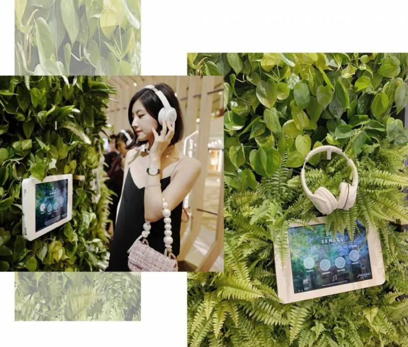 通过水雾喷洒出来的香气以及耳机里播放的音乐听说都是资生堂为了这次pop-up专门创作的,细节无处不在,也是非常花心思了!