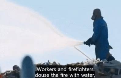工人介绍了焚化炉运作的过程:先是点火,使炉内温度升高到800摄氏度,然后再投入垃圾,这时候垃圾本身燃烧也会产生热量。焚烧炉内的温度会保持在850-1000度,这是为了垃圾的充分燃烧。