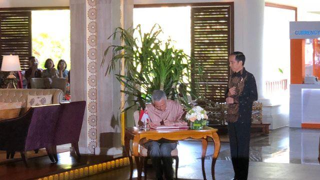李显龙总理早上9点45分抵达峇厘岛拉古纳度假村,受印尼总统佐科欢迎。他抵步后在签名册上留念,并同佐科总统举行四眼会谈。预料,两人将就双边、区域和全球课题进行广泛讨论。