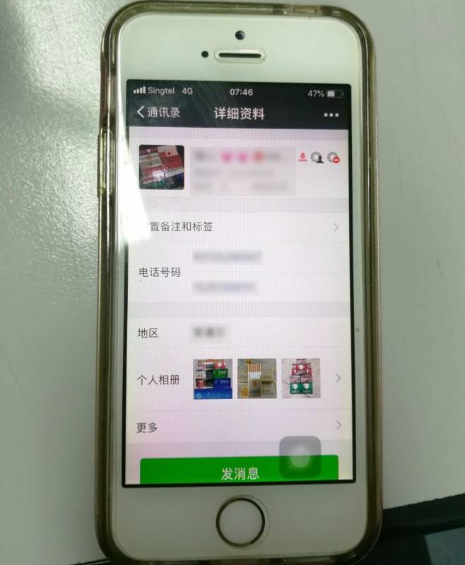 Zhu Yanqing在微信上发布售卖漏税香烟的广告。(照片:Singapore Customs)