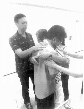 肇祸车长陈儒宏与死者丈夫刘先生拥抱“ 和解 ”。(法庭文件)