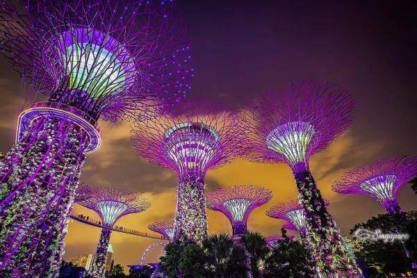 滨海湾花园可以说是来新加坡必来的景点之一了,它由三座花园组成:南花园、东花园和中花园,而在这里最出名的可以说是远处就能观看到的擎天大树了;