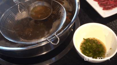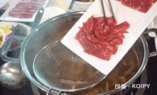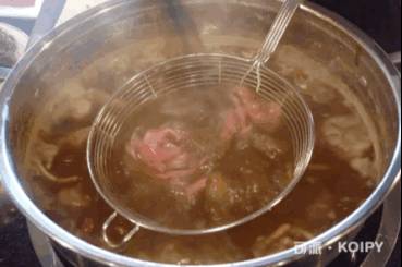 按照由瘦到肥的顺序用漏勺一一烫熟