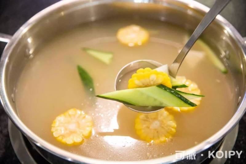 玉米和黄瓜片点缀其间,味甘醇不油腻