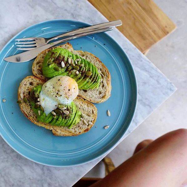 这里的牛油果吐司一点都不花俏,面包上铺满了一大片的牛油果,还有一个半熟蛋,再撒上一些葵花籽。入口都是牛油果的香气。