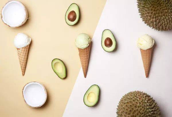 感觉在新加坡,椰子、牛油果和榴梿是好朋友,很多时候都是一起推出。牛油果自带奶油香气,特别适合用来做冰淇淋。