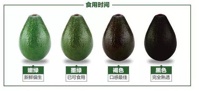 眼看:当牛油果没有了鲜绿的颜色,开始逐步变黑的时候,它的最佳食用时机就要到来了
