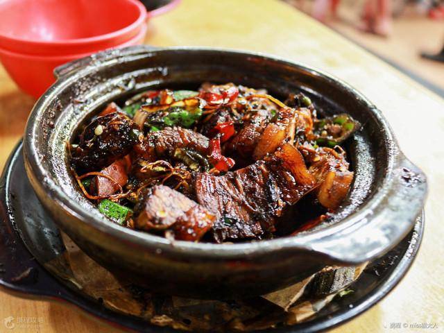 广告干的叫甘香肉骨茶,当归、枸杞、党参等药材与肉骨炒制而成,肉骨香浓入味,越嚼越香,也是店家的招牌产品。