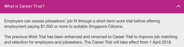 雇员请登陆网站 www.wsg.gov.sg/careertrial_jobseekers