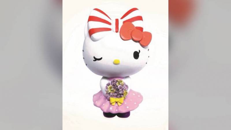 “吉蒂猫胡送胡姬花”小塑像 (照片:Hello Kitty Orchid Garden Café)