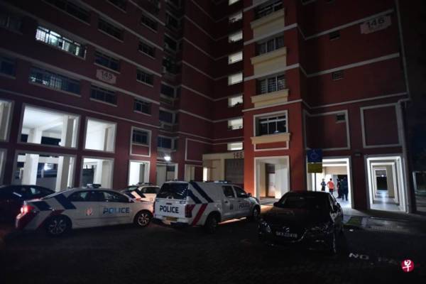 这起蓄意伤人案,昨晚在美岭街第146座组屋发生。(图取自海峡时报)